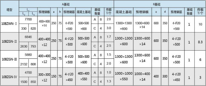 基礎參數表